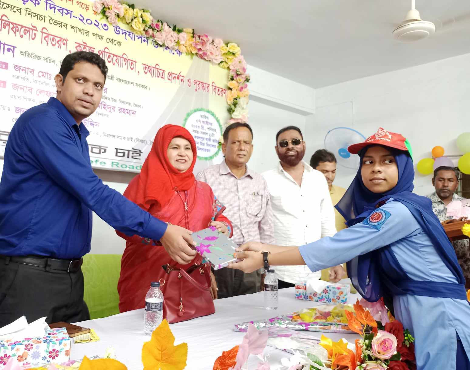 ভৈরব (কিশোরগঞ্জ) প্রতিনিধি: ২২ অক্টোবর জাতীয় নিরাপদ সড়ক দিবস-২০২৩ উদযাপন উপলক্ষে মাসব্যাপী কর্মসূচীর অংশ হিসেবে কিশোরগঞ্জের ভৈরবে নিরাপদ সড়ক চাই (নিসচা) ভৈরব শাখার পক্ষ থেকে শিক্ষার্থী, শিক্ষক, ম্যানেজিং কমিটি, অভিভাবক সমাবেশ, লিফলেট বিতরণ, কুইজ প্রতিযোগিতা, তথ্য চিত্র প্রদর্শন ও শিক্ষার্থীদের মাঝে পুরষ্কার বিতরণ করা হয়েছে।