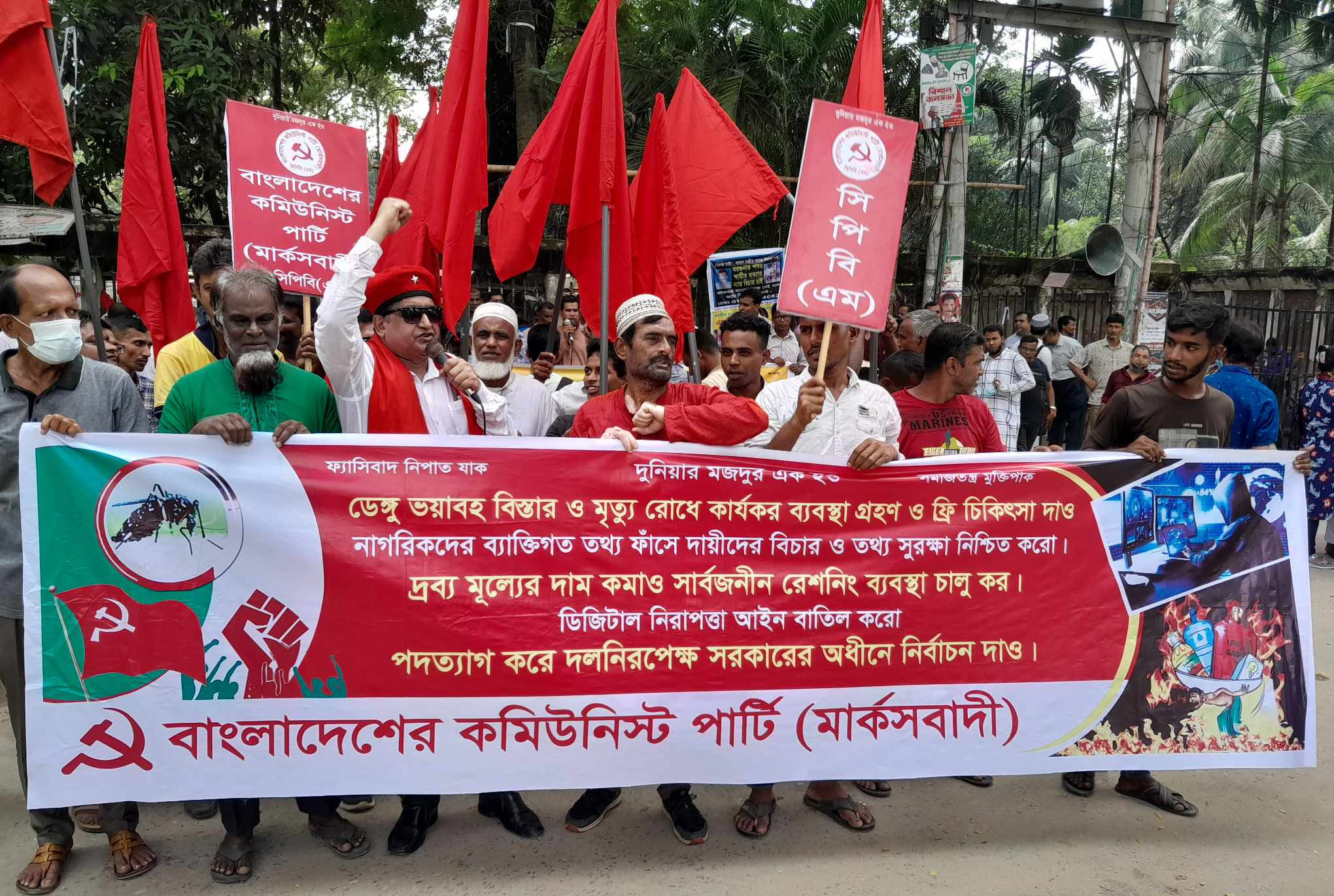 নিজস্ব প্রতিবেদকঃ আজ সোমবার ৯ অক্টোবর ২০২৩ সকল ধরনের নিত্যপণ্যের দাম কমানো সরকারের পদত্যাগ ও দল নিরপেক্ষ সরকারের অধিনে নির্বাচনের দাবিতে বাংলাদেশের কমিউনিস্ট পার্টি (মার্কসবাদী)—সিপিবি(এম) জাতীয় প্রেসক্লাবের সামনে সমাবেশ ও বিক্ষোভ মিছিল করেছে। এতে সভাপতিত্ব করেন পার্টির কেন্দ্রীয় কমিটির সভাপতি কমরেড ডা. এম এ সামাদ।