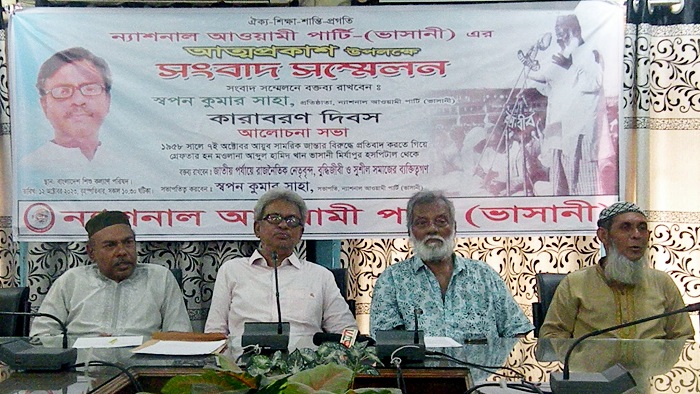 ঢাকায় বাংলাদেশ শিশু কল্যাণ পরিষদে বৃহস্পতিবার (১২ অক্টোবর) ন্যাশনাল আওয়ামী পার্টি (ভাসানী)-এর উদ্যোগে সংবাদ সম্মেলন ও মওলানা ভাসানীর কারাবরণ বিষয়ে আলোচনা সভায় তিনি এসব কথা বলেন।
