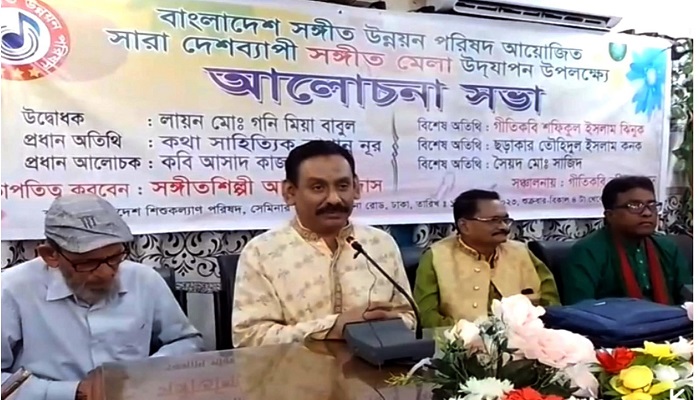 বাংলাদেশ সঙ্গীত উন্নয়ন পরিষদ এর উদ্যোগে দেশব্যাপী সঙ্গীত মেলা উদযাপনের উদ্বোধনী অনুষ্ঠান উপলক্ষে ১৩ অক্টোবর শুক্রবার বিকালে ঢাকার বাংলাদেশ শিশু কল্যাণ পরিষদ সেমিনার হলে আয়োজিত আলোচনা সভায় প্রধান অতিথির বক্তব্যে তিনি এসব কথা বলেন।