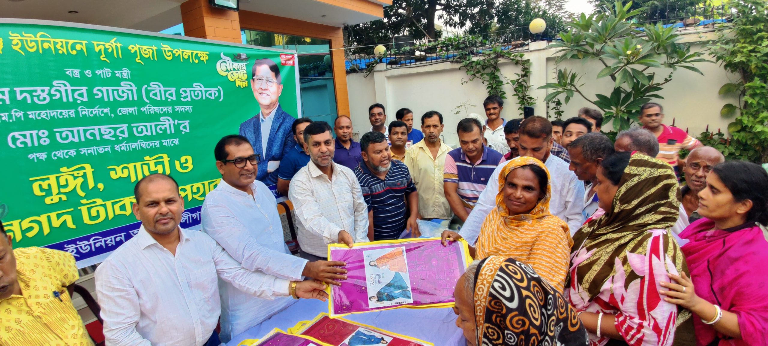 রূপগঞ্জ প্রতিনিধি: বস্ত্র ও পাট মন্ত্রী গোলাম দস্তগীর গাজী বীরপ্রতীকের নির্দেশনায় শারদীয় দূর্গাপূজা উপলক্ষ্যে নারায়ণগঞ্জের রূপগঞ্জে শাড়ি, লুঙ্গি ও নগদ অর্থ বিতরন করেছেন, নারায়ণগঞ্জ জেলা পরিষদের সদস্য মোহাম্মদ আনছার আলী। বৃহস্পতিবার বিকালে উপজেলার ইছাপুরা, কেয়ারিয়া ও ছনি এলাকায় এ শাড়ি, লুঙ্গি ও নগদ অর্থ বিতরন করা হয়।