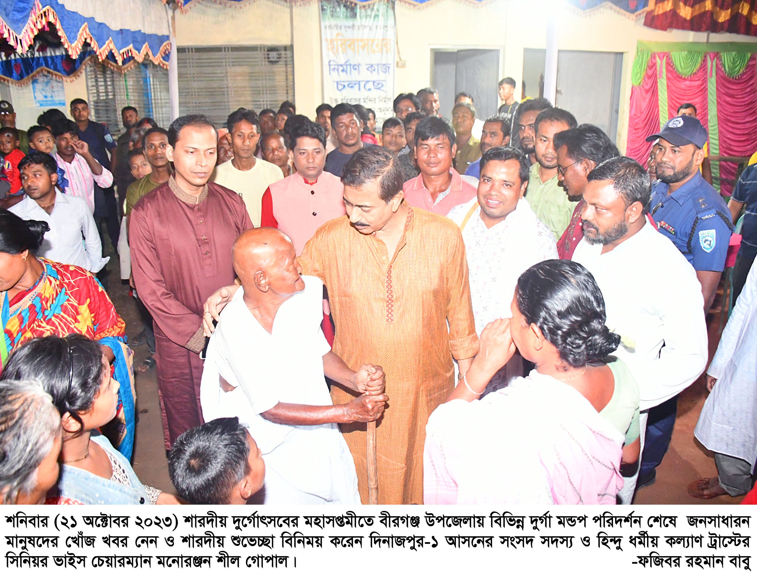 শনিবার ২১ অক্টোবর রাতে হিন্দু ধর্মীয় কল্যাণ ট্রাস্টের বাস্তবায়নে ১০ লাখ টাকা ব্যয়ে বীরগঞ্জ উপজেলার মরিচা ইউনিয়নে সুন্দরী হাটগাছ বামনপুকুর হরিবাসর মন্দিরের ভিত্তি প্রস্তর উদ্বোধনী অনুষ্ঠানে প্রধান অতিথির বক্তব্যে তিনি এসব কথা বলেন।