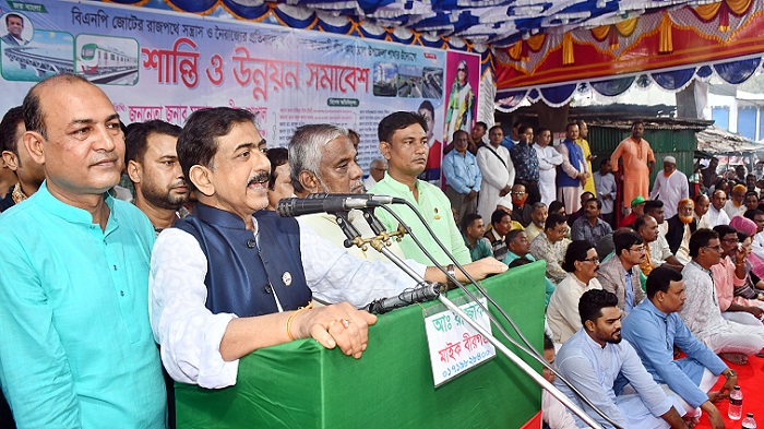তিনি হুঁশিয়ারি উচ্চারণ করে বলেন, মহা যাত্রার নামে এবার একটি মানুষকে হত্যা করা হলে, একটি বাস, ট্রাক, বসতবাড়িতে অগ্নিসংযোগ করা হলে জনগণ বিএনপি জামাতকে দোকান আস্তা করে নিক্ষেপ করবে। শেখ হাসিনার অধীনে সুষ্ঠু ও নিরপেক্ষ নির্বাচন অনুষ্ঠিত হবে উল্লেখ করে তিনি আরো বলেন, দেশের উন্নয়নে মানুষ শেখ হাসিনার মহাযাত্রায় শরিক হয়েছে, উন্নয়নের এই মহাযাত্রা থেকে জনগণকে নামানোর কোন শক্তি বিএনপি জামায়াতের নেই। তিনি বলেন, মহা সমাবেশের নামে কোন অশুভ শক্তি বিশৃঙ্খলা করার চেষ্টা করলে কাহারোল ও বীরগঞ্জবাসী ঢাকা অভিমুখী রওনা হবে। তিনি ফিলিস্তিনি নারী-শিশুদের উপর ইসরায়েলের বর্বোরচিত হামলার কঠোর নিন্দা ও সমালোচনা করে বলেন, যখন ফিলিস্তিনিদের নির্মমভাবে হত্যা করা হচ্ছে, তখন ফখরুল সাহেবরা কুলাঙ্গার ও দন্ডপ্রাপ্ত তারেক রহমানের নির্দেশে ইসরায়েলের বিরুদ্ধে মুখ বন্ধ রেখেছেন।