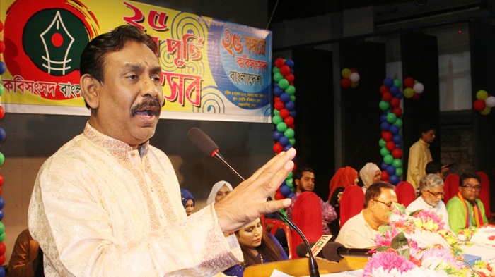 কবিসংসদ বাংলাদেশের ২৫ বছর পূর্তি উপলক্ষে ৩ নভেম্বর শুক্রবার বিকেলে ঢাকার সেগুনবাগিচাস্থ কেন্দ্রীয় কচিকাঁচা মিলনায়তনে আয়োজিত আলোচনা সভায় প্রধান আলোচক হিসেবে তিনি এসব কথা বলেন। তিনি আরো বলেন, কবিরা দেশ ও জাতির ক্রান্তিকালে সর্বদা ইতিবাচক ও বলিষ্ঠ ভূমিকা পালন করে। শান্তিময় ও বাসযোগ্য সমাজ প্রতিষ্ঠা করতে কবিরা কাজ করছেন। কবিরা সর্বদা মানবতার জন্যে কাজ করে থাকেন। তিনি নতুন প্রজন্মকে দেশীয় নান্দনিক সংস্কৃতিতে উদ্বুদ্ধ করে গড়ে তোলার আহ্বান জানান।