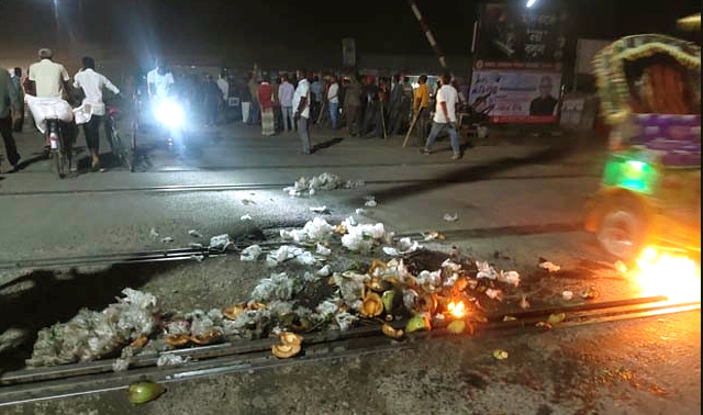 রোববার (৫ নভেম্বর) সন্ধ্যায় শহরের রেলগেট এলাকায় বিকট শব্দে পর পর বেশ কয়েকটি ককটেল বিস্ফোরিত হয়। এ সময় রেল লাইনে আগুন ও একটি ড্রাম ট্রাক ভাঙচুর করে দুর্বৃত্তরা। এতে স্থানীয় লোকজন আতঙ্কিত হয়ে ছোটাছুটি করতে থাকে এবং মুহূর্তের মধ্যে দোকানপাট বন্ধ হয়ে যায়।