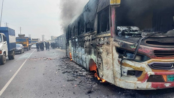 তিনি জানান, শ্রমিক নামধারী কিছু দুষ্কৃতিকারী দুটি বাসে আগুন দিয়েছে। পুলিশ বিক্ষোভকারীদের নিয়ন্ত্রণের চেষ্টা করছে।