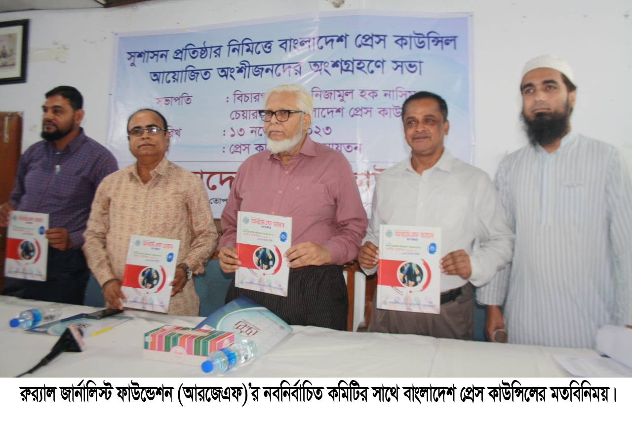 নিজস্ব প্রতিবেদকঃ রুর‌্যাল জার্নালিস্ট ফাউন্ডেশন (আরজেএফ) এর নবনির্বাচিত কার্যনির্বাহী কমিটির অংশগ্রহণে বাংলাদেশ প্রেস কাউন্সিলের আয়োজনে সুশাসন প্রতিষ্ঠার নিমিত্তে শীর্ষক মতবিনিময় সভা অনুষ্ঠিত হয়।