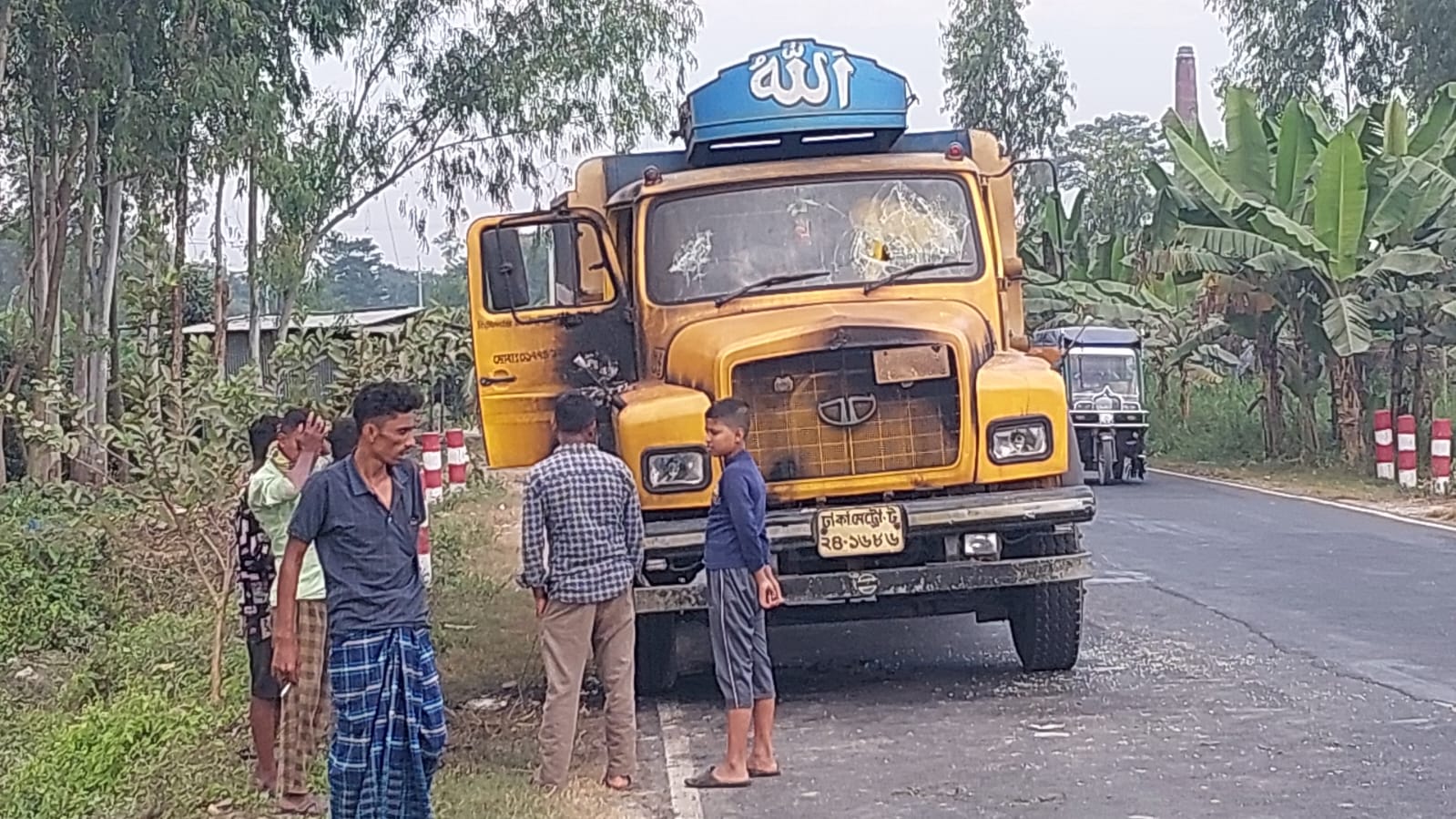 এ সময় ট্রাক চালক যশোরের নাইম হোসেন, বগুড়ার জনি মিয়া, নাটোরের হেলাল উদ্দিনসহ অন্যান্য মটর যানের চালক ও হেল্পাররা জানান, ৮/১০ যুবক এসে ট্রাকে ইটপাটকেল ছুঁড়তে ছুড়তে ট্রাকের কাছে এসে আগুন ধরিয়ে