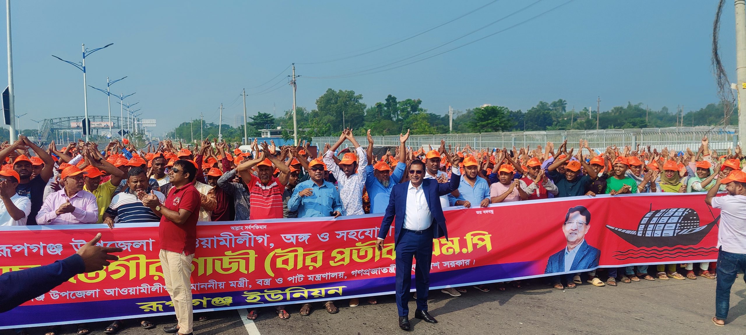 স্টাফ রিপোর্টারঃ নারায়ণগঞ্জের রূপগঞ্জে বিএনপি জামাতের হরতাল অবরোধের প্রতিবাদে বস্ত্র ও পাট মন্ত্রী গোলাম দস্তগীর গাজী বীর প্রতীক এমপির নির্দেশনায় বিশাল শোডাউন মিছিল অনুষ্ঠিত হয়েছে।