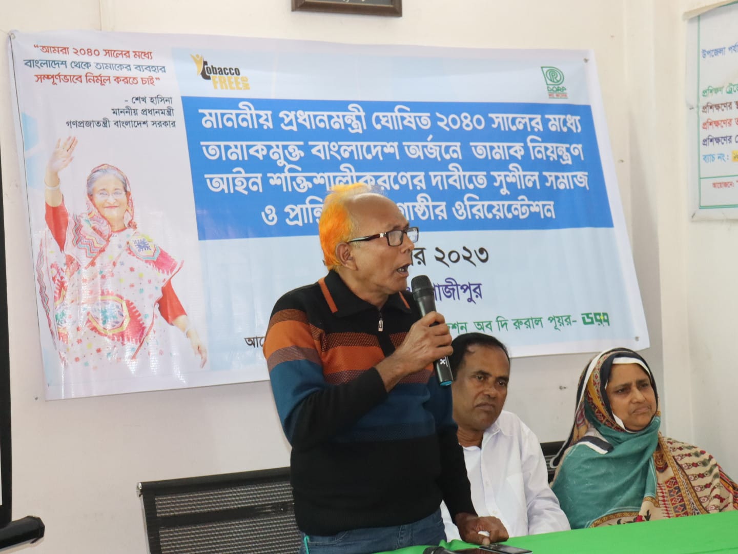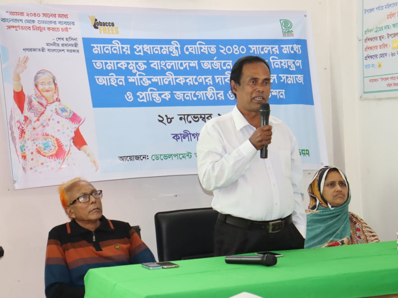 এই প্রেক্ষিতে মঙ্গলবার (২৮ নভেম্বর ২০২৩) বেসরকারি উন্নয়ন সংস্থা ডেভেলপমেন্ট অর্গানাইজেশন অব দ্য রুরাল পুয়র (ডর্প) গাজীপুরের কালীগঞ্জ উপজেলায় সুশীল সমাজ এবং প্রান্তিক জনগোষ্ঠীর জন্য “জনস্বাস্থ্য রক্ষায় তামাক নিয়ন্ত্রণ আইন শক্তিশালীকরণ এবং তামাকের কর ও মূল্য বৃদ্ধির দাবি” প্রকল্পটির ওরিয়েন্টেশন প্রোগ্রাম আয়োজন করে।
