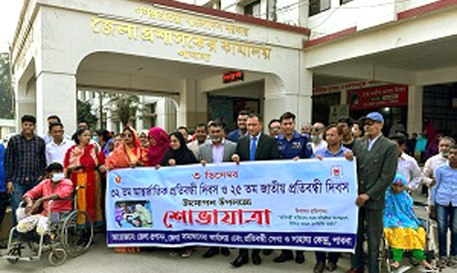 নিজস্ব প্রতিনিধি: পাবনায় “প্রতিবন্ধী ব্যক্তিদের সাথে সম্মিলিত অংশগ্রহণ, নিশ্চিত করবে এসডিজি অর্জন” এ স্লোগানকে সামনে রেখে র্যালি, সাংস্কৃতিক অনুষ্ঠান, আলোচনা সভাসহ নানা আয়োজনে পালিত হয়েছে ৩২তম আর্ন্তজাতিক প্রতিবন্ধি দিবস ও ২৫তম জাতীয় প্রতিবন্ধি দিবস।