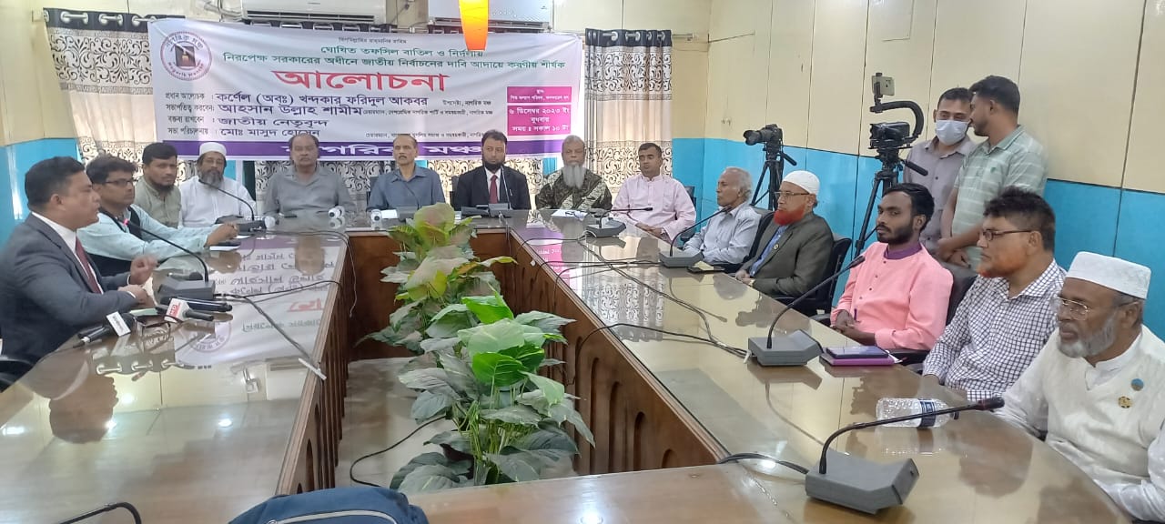 বক্তারা আরো বলেন, ২০১৪ সাল থেকে ২০১৮ সাল এবং এই পর্যন্ত তিনটি নির্বাচনই জাতীয়—আন্তর্জাতিকভাবে বিতর্কের সৃষ্টি করেছে। সরকার যদি দেশি—বিদেশি পর্যবেক্ষক গণকে তোয়াক্কা না করে গোয়ার গোবিন্দ কায়দায় নির্বাচন করতে চায়, সেটি হবে আত্মঘাতী সিদ্ধান্ত। অজ্ঞাত—অখ্যাত ও ভুঁইফোড় যে সকল রাজনৈতিক দল নির্বাচনে অংশগ্রহণ করবে তারা জাতীয় বেঈমান হিসেবে ইতিহাসের পাতায় লিপিবদ্ধ থাকবে। ইতিমধ্যেই অনেক জাতীয় বেইমানদের চেহারা জাতির সামনে উন্মোচন হয়েছে। বর্তমান আওয়ামী লীগ সরকার ভুলে গেছে যে ১৯৯৬ সালে বর্তমান আন্দোলনরত বিরোধী দলের সর্ববৃহৎ ইসলামী রাজনৈতিক দল বাংলাদেশ জামায়াতে ইসলামীকে সাথে নিয়ে তত্ত্বাবধায়ক সরকারের দাবিতে ১৭৩ দিন হরতাল করে দেশের অর্থনীতির ব্যাপক ক্ষতিসাধন করেছিল। যার ফলে বিএনপি বাধ্য হয়েছিল তত্ত্বাবধায়ক সরকার দিতে। সেই নিরপেক্ষ নির্বাচন করতে বিএনপি—জামায়াতসহ বিরোধী রাজনৈতিক দলগুলো এখন আন্দোলন করছে। জাতি আশ্বস্ত হচ্ছে এবারের আন্দোলন সফল হবে। আমরা এ আন্দোলনের সাথে ঐক্যমত পোষণ করছি। আজকের এই আলোচনা থেকে আগামী দিনে রাজপথে আন্দোলনের দাবানল দেখতে পাবে জাতি। আমাদের সাথে বাংলাদেশের গর্বিত সন্তান বীর মুক্তিযোদ্ধারা রয়েছেন। আমরা কোন স্বৈরশাসকের রক্ত চক্ষু পরোয়া করি না। প্রশাসনের কিছু কেনা গোলাম ও দুর্নীতিবাজ ব্যক্তিদের সমন্বয়ে জেলা উপজেলায় নির্বাচনী প্রস্তুতি কমিটি গঠন করে নির্বাচন করে পার পাওয়ার স্বপ্ন দেখছে সরকার। আমরা অত্যন্ত দৃঢ়তার সাথে বলছি এই স্বপ্নে তাদের গুড়ে বালি।