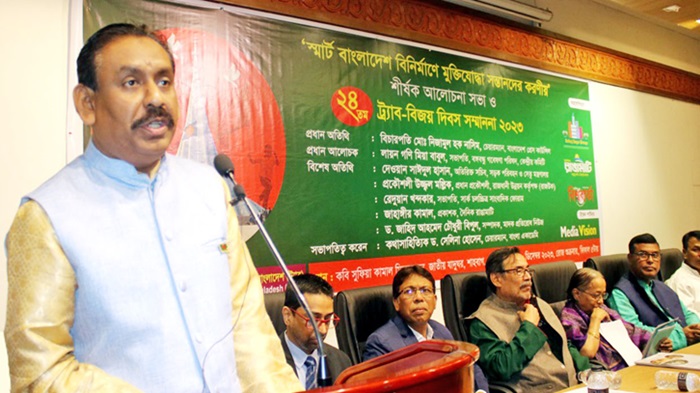টেলিভিশন রিপোর্টার্স অ্যাসোসিয়েশন অব বাংলাদেশ (ট্র্যাব) এর উদ্যোগে ৮ ডিসেম্বর (শুক্রবার) বিকেলে জাতীয় জাদুঘরের সুফিয়া কামাল মিলনায়তনে আয়োজিত "স্মার্ট বাংলাদেশ বিনির্মাণে মুক্তিযোদ্ধা সন্তানদের করণীয়" শীর্ষক আলোচনা সভা ও ২৪ তম ট্র্যাব-বিজয় দিবস সম্মাননা ২০২৩ প্রদান অনুষ্ঠানে প্রধান আলোচক হিসেবে তিনি এসব কথা বলেন। তিনি আরো বলেন, সর্বস্তরে বঙ্গবন্ধুর আদর্শ ও মুক্তিযুদ্ধের চেতনা বাস্তবায়ন করতে সকলকে সচেষ্ট থাকতে হবে। বঙ্গবন্ধুর প্রধানতম আদর্শ হচ্ছে জনসেবা করা। তিনি সকলকে সামর্থ অনুযায়ী অসহায়কে সহায়তা করার আহ্বান জানান।