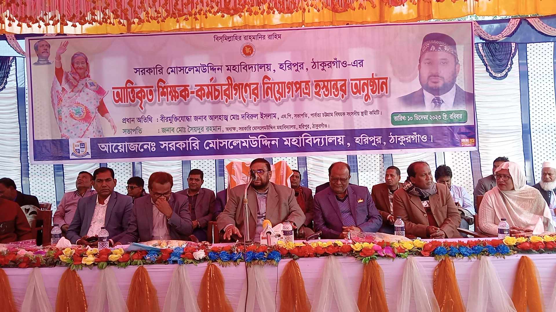 হরিপুর (ঠাকুরগাঁও) প্রতিনিধিঃ ঠাকুরগাঁওয়ের হরিপুর সরকারি মোসলেমউদ্দিন মহাবিদ্যালয়ের আত্তিকৃত শিক্ষক-কর্মচারিদের নিয়োগপত্র হাতে তুলে দিলেন ঠাকুরগাঁও-২ সংসদ সদস্য আলহাজ্ব মোঃ দবিরুল ইসলাম এমপি।