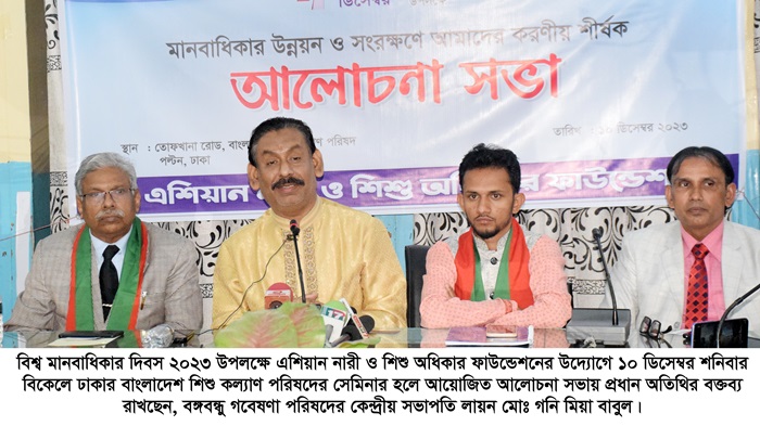 বিশ্ব মানবাধিকার দিবস ২০২৩ উপলক্ষে এশিয়ান নারী ও শিশু অধিকার ফাউন্ডেশনের উদ্যোগে ১০ ডিসেম্বর শনিবার বিকেলে ঢাকার বাংলাদেশ শিশু কল্যাণ পরিষদের সেমিনার হলে আয়োজিত আলোচনা সভায় প্রধান অতিথির বক্তব্যে তিনি এসব কথা বলেন।