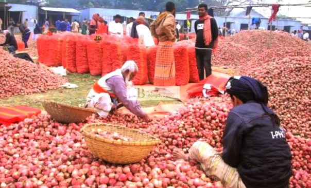 জানা যায়, সোমবার উপজেলার অধিকাংশ হাট-বাজারে প্রতিমণ মূল কাটা বা আগাম আবাদ করা পেঁয়াজ পাইকারী বিক্রি হয়েছে ৪৫শ’টাকা থেকে ৫ হাজার টাকা দরে। এসময় হাট-বাজারে প্রতিকেজি পেঁয়াজ খুচরা বিক্রি হয়েছে ১৩০ থেকে ১৪০টাকা দরে। অথচ মাত্র একদিনের ব্যবধানে মঙ্গলবার (১২ ডিসেম্বর) প্রতিমণ পেঁয়াজ পাইকারি বিক্রি হয় ৩৫শ’ থেকে ৪ হাজার টাকা দরে।