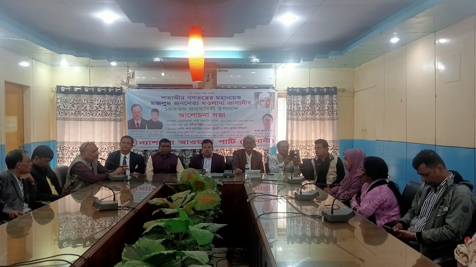 নিজস্ব প্রতিবেদকঃ ন্যাশনাল আওয়ামী পার্টির (ভাসানী) উদ্যোগে মঙ্গলবার (১২ ডিসেম্বর) সকাল ১০.৩০ টায় বাংলাদেশ শিশু কল্যাণ পরিষদ মিলনায়তনের ভিআইপি লাউঞ্জে শতাব্দীর গণতন্ত্রের মহানায়ক মজলুম জননেতা মওলানা ভাসানীর ১৪৩তম জন্মবার্ষিকীর আলোচনা সভা হয়েছে।