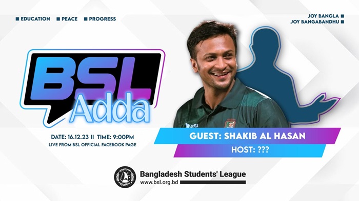 বিসিএল আড্ডায় এবারের চমক সাকিব আল হাসান। আড্ডায় এবারের অতিথি হিসেবে আসছেন সদ্য রাজনীতিতে নাম লেখানো বাংলাদেশ ক্রিকেটের এই পোস্টার বয়। কেন্দ্রীয় ছাত্রলীগের ফেসবুক পেজ থেকে করা পোস্টে বিষয়টি নিশ্চিত করা হয়েছে।