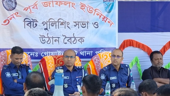 এসময় গোয়াইনঘাট থানা এস আই এমরুল কবিরের সঞ্চালনায় ইউনিয়নের বিভিন্ন শ্রেণি-পেশার লোকজন উপস্থিত ছিলেন।