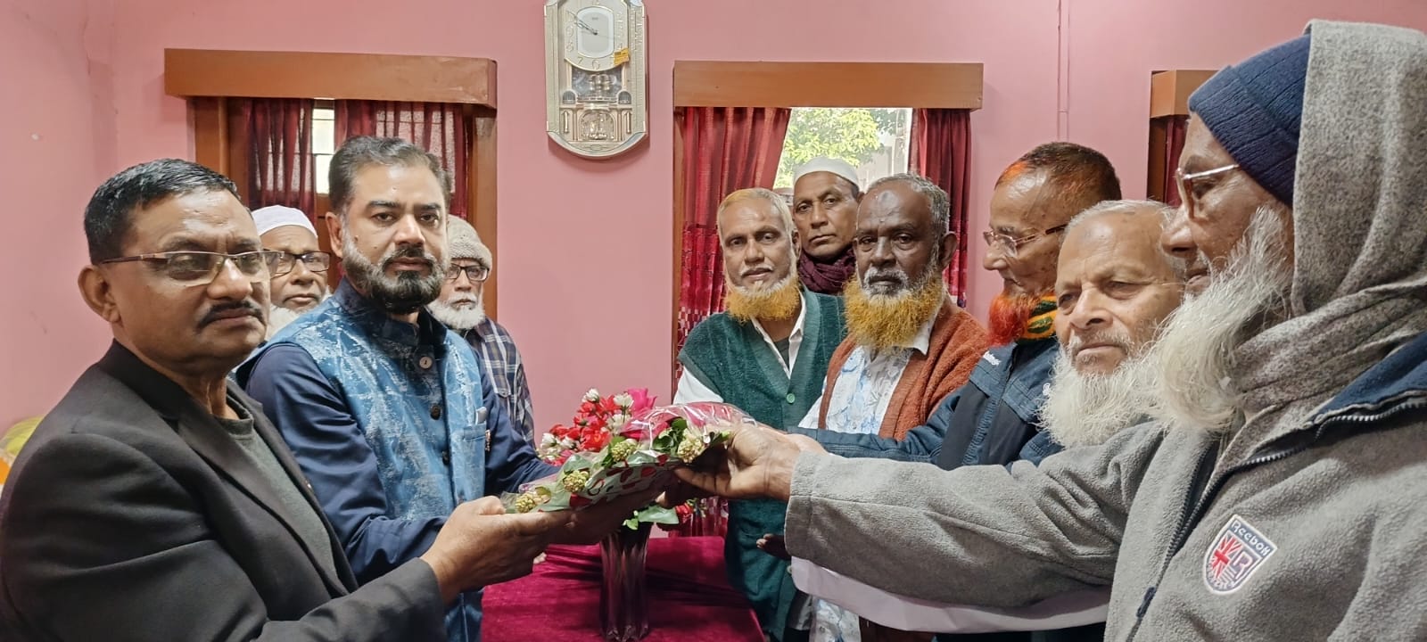 অনুষ্ঠানের শুরুতে জেষ্ঠ কর্মচারীরা তাকে ফুলেল শুভেচ্ছা জানান।
