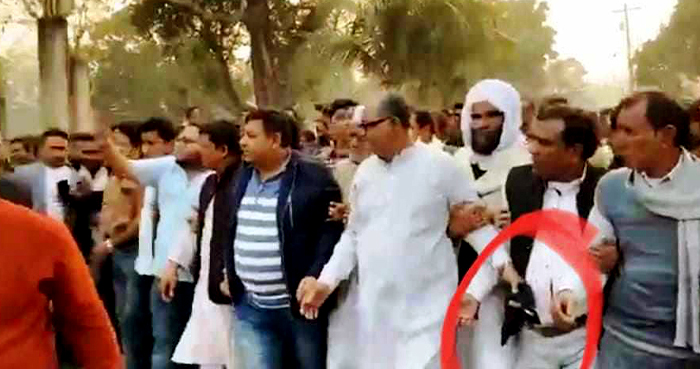 সাঁথিয়া থানা সূত্র জানায়, শুক্রবার রাতে সাঁথিয়া উপজেলা আওয়ামী লীগ কার্যালয় ভাংচুরের ঘটনায় পাবনা-১ আসনে স্বতন্ত্র সংসদ সদস্য প্রার্থী অধ্যাপক আবু সাইয়িদের প্রধান নির্বাচনী এজেন্ট আব্দুল বাতেনসহ সমর্থকদের দায়ী করে মামলা হয়। ঐ মামলার আসামীদের গ্রেফতার দাবীতে গত শনিবার বিকেলে সাঁথিয়া উপজেলা আওয়ামী লীগ কার্যালয় থেকে বেড়া পৌর মেয়র ও নৌকার প্রার্থী শামসুল হক টুকুর ছেলে আসিফ শামস রঞ্জন, সাঁথিয়া উপজেলা আওয়ামী লীগ সভাপতি হাসান আলী, সাবেক প্রচার সম্পাদক শফিকুল ইসলাম শফিক, সাঁথিয়া পৌর মেয়র মাহবুবুল আলম বাচ্চুর নেতৃত্বে বিক্ষোভ মিছিল হয়। সে মিছিলে শফিকুল ইসলাম শফি কোমরে পিস্তল নিয়ে অংশ নেন।