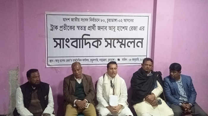 সোমবার (৮ জানুয়ারি) রাতে দামুড়হুদা উপজেলায় নিজ রাজনৈতিক কার্যালয়ে এক সংবাদ সম্মেলনে তিনি এ দাবি জানান। তিনি জানান, ৭ জানুয়ারি যে ভোট হয়েছে তাতে জনগণের আশা-আকাঙ্ক্ষার প্রতিফলন ঘটেনি। হাশেম রেজা বলেন, তার নির্বাচনি এলাকায় অবাধ ও সুষ্ঠু ভোট হয়নি। মানুষ নির্বিঘ্নে ভোট দিতে পারেনি। আওয়ামী লীগ প্রার্থীর লোকেরা ভোটারদের ভয়-ভীতি প্রদর্শন করেছে। প্রায় সব কেন্দ্রেই জালভোট দিয়েছে নৌকা প্রতীকের প্রার্থীর লোকেরা।