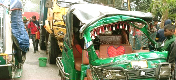 প্রত্যক্ষদর্শী ও আহতরা জানায়, দুপুর দেড়টার দিকে চাটমোহর থেকে বাঘাবাড়ী যাওয়ার সময় রাংগালীয়া গ্রামে গ্যাস পাম্পের পাশে ট্রাকের সঙ্গে সিএনজির মুখোমুখী সংঘর্ষে ট্রাকের চাকায় পিষ্ট হয়ে ঘটনা স্থলেই এক জন মারা যায়। পরে স্থানীয়রা আহতদের উদ্ধার করে ভাঙ্গুড়া স্বাস্থ্য কমপ্লেক্সে নিয়ে যায়। দুর্ঘটনা কবলিত ট্রাকটির চালক দ্রুত গতিতে সেখান থেকে পালিয়ে যায়।