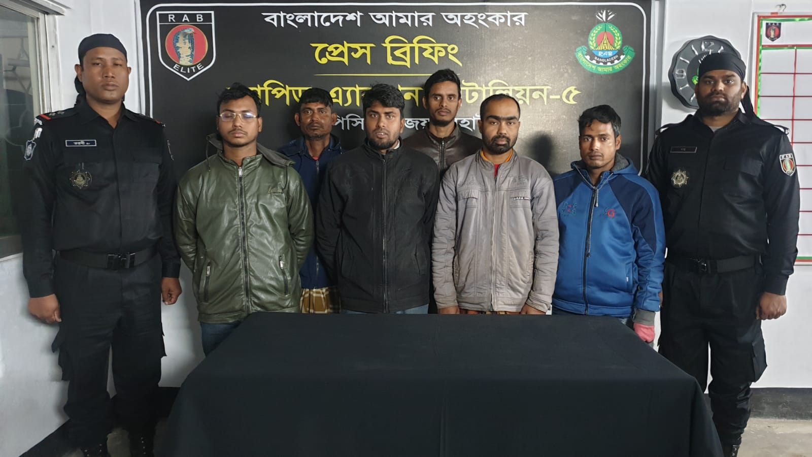 আটককৃতরা হলেন মোঃ পলাশ হোসেন (৩৮), পিতা- মোঃ ইদ্রিস আলী, সাং- বড়থা পূর্ব পাড়া, মোঃ রুবেল হোসেন কাজল (৩৩), পিতা- মোঃ মোজাম্মেল হক বাবলু, সাং- বড়থা পূর্ব পাড়া, মোঃ আবু সাঈদ (২৬), পিতা- মোঃ আবুল কালাম আজাদ, সাং- ফতেহপুর বাজার, মোঃ মিলন রানা (৩০), পিতা- মোঃ খায়রুল ইসলাম, সাং ফতেহপুর বাজার, মোঃ জামিল হোসেন (২৬), পিতা মোঃ মিজানুর রহমান, সাং- চৈতন্যপুর এবং মোঃ ওলিউল হোসেন (৩১), পিতা- মোঃ সোলায়মান আলী, সাং- পার্টি আমলাই, সকলের থানা- ধামইরহাট, জেলা- নওগাঁ।