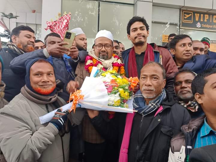 ট্রাক প্রতিক নিয়ে স্বতন্ত্র প্রার্থী হিসাবে বিজয়ী হওয়া দিনাজপুর-১ আসনের জাতীয় সংসদ সদস্য ও বীরগঞ্জ উপজেলা আওয়ামীলীগের সভাপতি আলহাজ্ব মোঃ জাকারিয়া জাকা শপথ গ্রহণ শেষে আজ ১৫ জানুয়ারি সোমবার ঢাকা থেকে বিকালে সৈয়দপুর বিমানবন্দরে পৌঁছান।