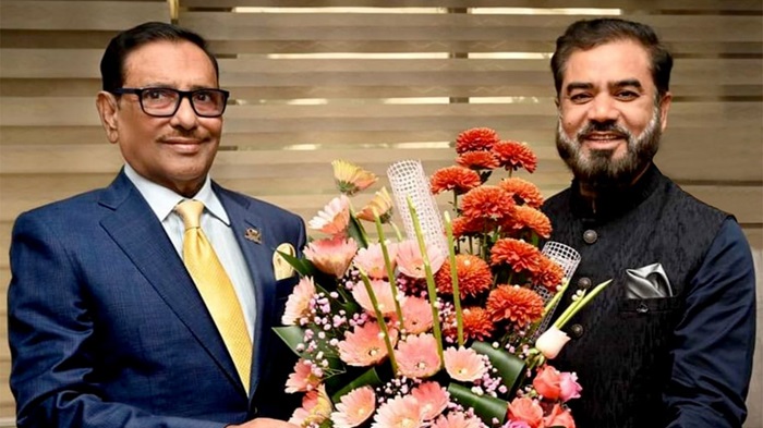 বুধবার সকালে রাজধানীর ঢাকাস্থ সড়ক পরিবহন ও সেতু মন্ত্রী ওবায়দুল কাদেরের অফিসে কেন্দ্রীয় আওয়ামীলীগের অর্থ ও পরিকল্পনা বিষয়ক উপকমিটির সদস্য মিনিস্টার মাইওয়ান গ্রুপের চেয়ারম্যান এফবিসিসিআইয়ের সাবেক ভাইস প্রেসিডেন্ট দৈনিক গড়ব বাংলাদেশ পত্রিকার সম্পাদক ও প্রকাশক আলহাজ্ব এম এ রাজ্জাক খান রাজ সিআইপি নির্বাচনত্তোর শুভেচ্ছা ও কুশলয়াদি বিনিময় কালে দুজন দুজনকে মিষ্টি মুখ করান ও একসাথে দৃঢ় প্রত্যয়ে চুয়াডাঙ্গা সহ দেশের শিল্পঅঙ্গন, সাংস্কৃতিঅঙ্গন, শিক্ষাঅঙ্গন সহ সকল উন্নয়নে একসাথে কাঁধে কাঁধ মিলিয়ে কাজ করার প্রত্যয় ব্যক্ত করেন।