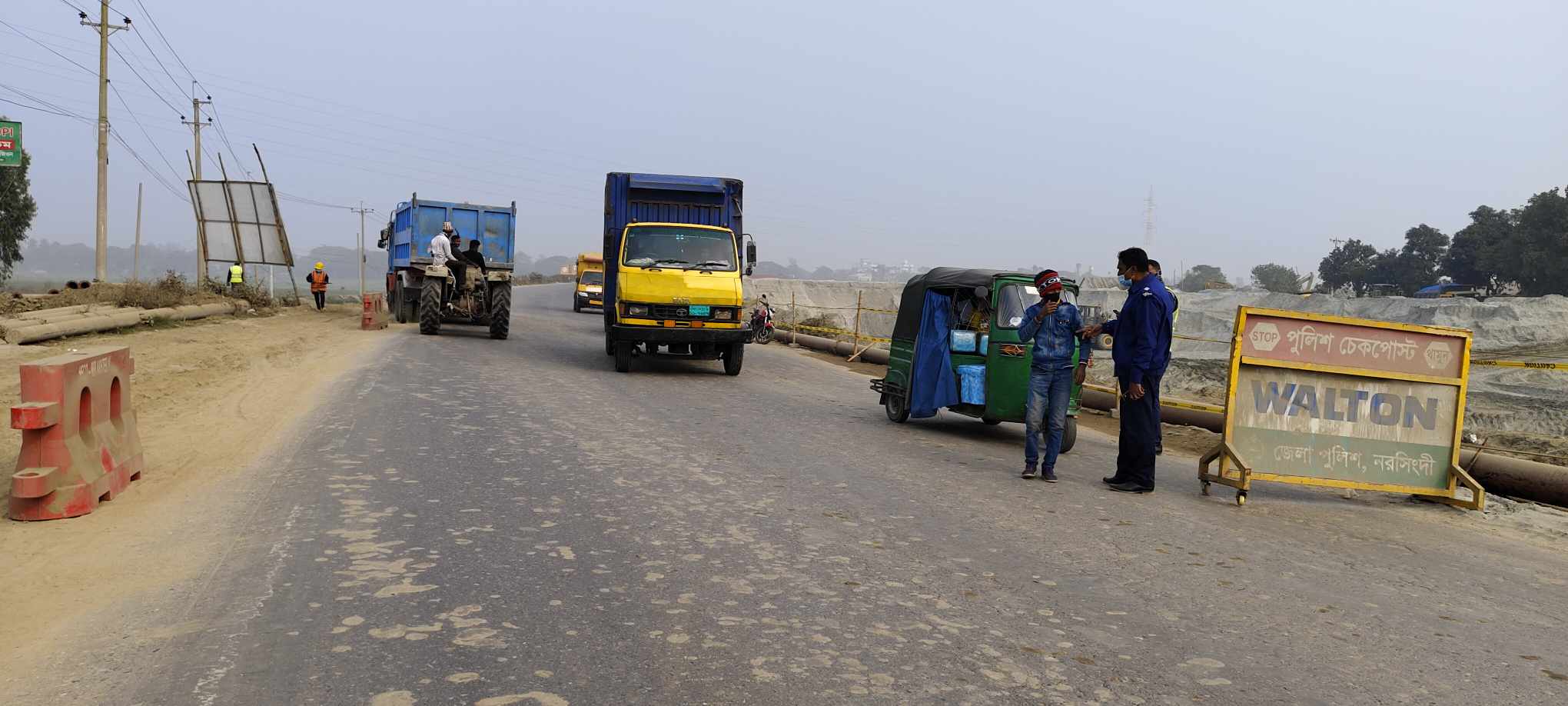 সোমবার (২২জানুয়ারি) দিনব্যাপী ঢাকা-সিলেট মহাসড়কে ভৈরব বাসস্ট্যান্ড থেকে রায়পুরা নীলকুঠি মহাসড়কের বিভিন্ন স্হানে কঠোর অবস্থান ও দ্রুত গতির যানবাহন শনাক্ত করতে অভিযান পরিচালনা করা হয়। এসময় বিভিন্ন যানবাহন ও মোটরবাইকের কাগজপত্র ও ড্রাইভিং লাইসেন্স চেক করা হয়।