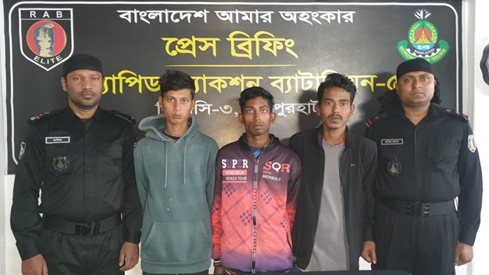 গোয়েন্দা তথ্যের ভিত্তিতে, র্যাব-৫ সিপিসি-৩ জয়পুরহাট এর চৌকস অপারেশনাল দল গত ২২ জানুয়ারি রাত ১০টার সময় জয়পুরহাট জেলার কালাই থানাধীন কলেজপাড়া এলাকা হতে কিশোর গ্যাং লিডার মোঃ সাজু সরদার (২৬), পিতা-মোঃ আশরাফ সরদার, সাং-কাজীপাড়া, মোঃ কামরুজ্জামান স্বাধীন (১৯), পিতা-মোঃ খলিলুর রহমান, সাং-থুপসাড়া, উভয় থানা-কালাই, জেলা-জয়পুরহাট ও মোঃ শিপন আহম্মেদ (১৬), পিতা-মোঃ ছামসুল হক, সাং-থুপসাড়া, থানা-কালাই, জেলা-জয়পুরহাট কে গ্রেফতার করা হয়েছে।