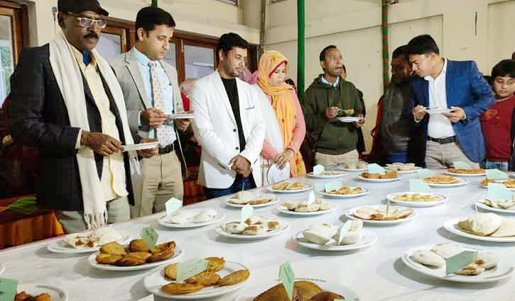 নিজস্ব প্রতিবেদক: টেবিলে প্লেটে থরে থরে সাজানো নানা রঙের আর নানা স্বাদের পিঠা। পাকান, ভাঁপা, পুলি, চিতই, পাটিশাপটা, নকশি পিঠা, ফুল পিঠা, মাল পোয়া, রস পাকনসহ নাম না জানা হরেক রকম পিঠা। এ যেন রসের মেলা।