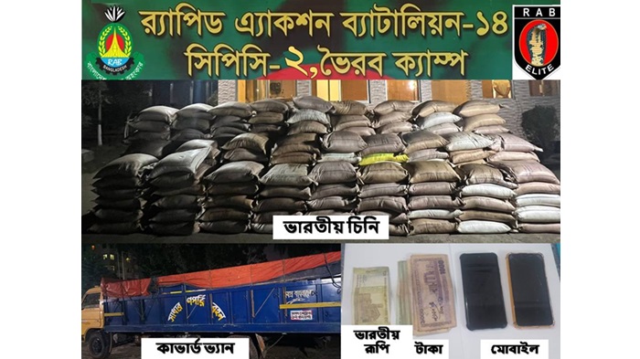 ভৈরব (কিশোরগঞ্জ) প্রতিনিধি: কিশোরগঞ্জের ভৈরবে চোরাচালানের মাধ্যমে আনা ভারতীয় চিনিসহ ০২( দুই)জনকে আটক করেছে সিপিসি-২ র্যাব-১৪ ভৈরব ক্যাম্প। এসময় জব্দ করা হয়েছে ট্রাক ও ১০ (দশ হাজার) কেজি ভারতীয় চিনি।