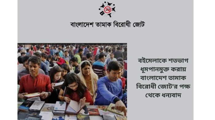 উল্লেখ্য বিগত কয়েক বছর ধরে ঢাকা বাংলা একাডেমি এবং ঢাকা মেট্রোপলিটন পুলিশ সমন্বিত উদ্যোগে মেলা প্রাঙ্গনে লাইটার এবং সিগারেট নিয়ে প্রবেশের ক্ষেত্রে নিষেধাজ্ঞা আরোপ করেছে। এ বছরও সংশ্লিষ্ট প্রশাসন গৃহিত সিদ্ধান্ত বাস্তবায়নে প্রয়োজনীয় উদ্যোগ গ্রহণ করবে বলে বাংলাদেশ তামাক বিরোধী জোট (বাটা) আশাবাদ ব্যক্ত করেছে।