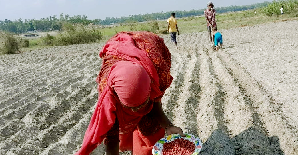 নিজস্ব প্রতিবেদক: পাবনার বেড়া উপজেলার বিস্তীর্ণ চরাঞ্চলে বেলে-দো-আঁশ মাটিতে প্রতিবছর ব্যাপক পরিমাণ চিনাবাদাম উৎপাদন হয়ে থাকে। চরাঞ্চলের অর্থকারী ফসলের মধ্যে অন্যতম এই চিনাবাদাম। প্রতি বছরের ন্যায় এ বছরও চাষিরা প্রচন্ড হাড় কাঁপানো শীত উপেক্ষা করে চিনাবাদাম চাষে এখন ব্যস্ত সময় পার করছেন।