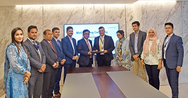 লংকাবাংলা ফাইন্যান্স লিমিটেডের এসইভিপি ও হেড অফ রিটেইল ফাইন্যান্স খোরশেদ আলম এবং অনন্ত রিয়েল এস্টেট লিমিটেডের চিফ মার্কেটিং অফিসার গৌতম তরফদার নিজ নিজ প্রতিষ্ঠানের পক্ষে একটি সমঝোতা চুক্তি স্বাক্ষর করেন।