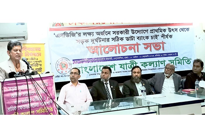 আজ ১১ ফেব্রুয়ারী ২০২৪ রবিবার সকালে নগরীর ঢাকা রিপোর্টাস ইউনিটিতে বাংলাদেশ যাত্রী কল্যাণ সমিতি আয়োজিত “এসডিজি’র লক্ষ্য অর্জনে সরকারী উদ্যোগে প্রাথমিক উৎস থেকে সড়ক দুর্ঘটনার পুর্ণাঙ্গ ডাটা ব্যাংক চাই” শীর্ষক আলোচনা সভায় প্রধান অতিথির বক্তব্য তিনি এই কথা বলেন।