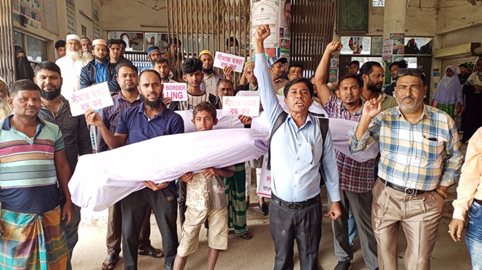 নিজস্ব প্রতিবেদকঃ সীমান্ত হত্যা বন্ধের দাবীতে কক্সবাজারের টেকনাফ থেকে শুরু হওয়া এই কর্মসূচি আজ ১৯ফেব্রুয়ারী সকাল১০ টায় হানিফ বাংলাদেশীর নেতৃতে আখাউড়া উপজেলা এসেছে, সীমান্ত এলাকায় মিছিল আখাউড়া উপজেলা ও রেলস্টেশন এসে শেষ হয়। বাংলাদেশের সাথে ভারত ও মিয়ানমার সাথে সীমান্ত আছে এমন সব জেলা ও উপজেলা প্রদক্ষিণ করে প্রতিবাদ জানাবে। কর্মসূচী যশোরের বেনাপোল উপজেলায় গিয়ে শেষ হবে। অন্য সদস্যরা হলেন নুরুল আজিম, সৌরভ হোসেন বেলাল, মো আরিফ, এন ইউ আহমেদ।