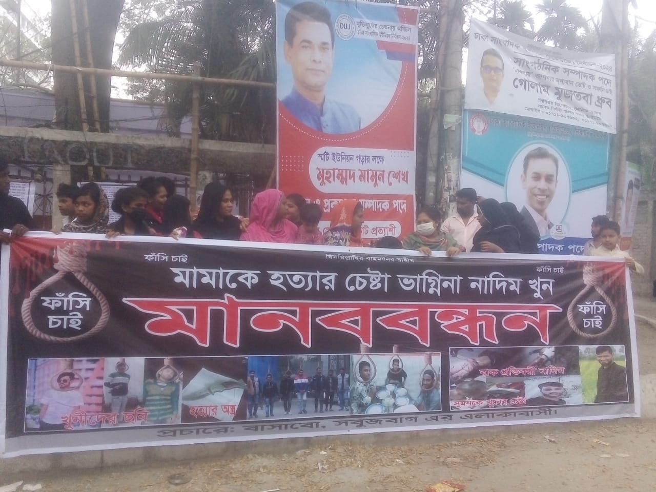 নিজস্ব প্রতিবেদকঃ মাননীয় প্রধান মন্ত্রী ও রাষ্ট্রপ্রতির কাছে বিনীত নিবেদন। হত্যাকারীর ফাঁসি চাই। বাকপ্রতিবন্ধী নাদিম হোসেন (২৮) হত্যা প্রতিবাদে জাতীয় প্রেস ক্লাবের সামনে মানববন্ধন অনুষ্ঠিত হইবে। মানব বন্ধনে হত্যাকারীদের গ্রেফতারের জন্য পুলিশ ও ডিবি কে আবেদন জানানো যাচ্ছে যে মূল পলাতক আসামী পিয়াসকে দ্রুত গ্রেফতারের করা হোক।