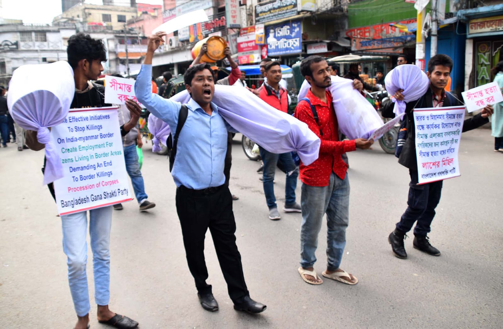 গত ১৬ ফেব্রয়ারী কক্সবাজার টেকনাফ থেকে শুরু হওয়া লাশের মিছিল বাংলাদেশের সাথে সীমান্ত আছে এমন সব জেলা উপজেলা প্রদক্ষিণ করে যশোরের বেনাপোল উপজেলায় গিয়ে শেষ হওয়ার কথা ছিলো। কিন্তু রাজশাহীতে পুলিশের বাধায় কর্মসূচি বিরতি ঘোষণা করছেন হানিফ বাংলাদেশী। কয়েকদিন পরে আবার লাশের মিছিল শুরু করবেন।