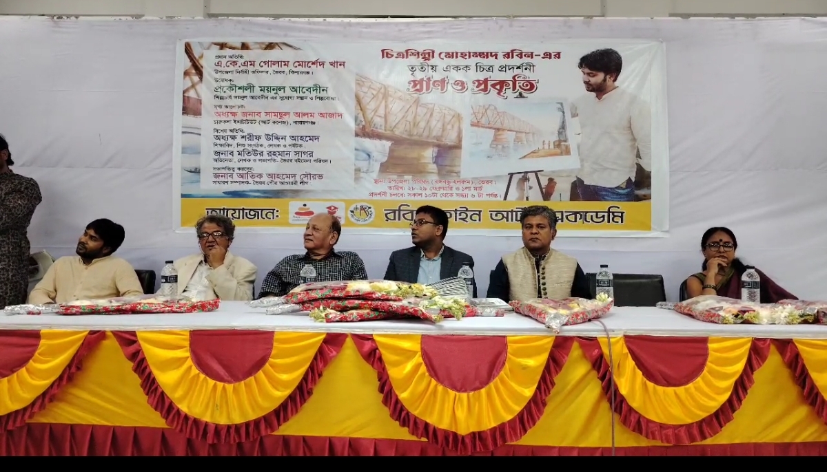 ভৈরব (কিশোরগঞ্জ) প্রতিনিধি: কিশোরগঞ্জের ভৈরবে তিনদিন ব্যাপী চিত্র শিল্পী মোহাম্মদ রবিন এর তৃতীয় একক চিত্র প্রদর্শনী 'প্রাণ ও প্রকৃতি' শুরু হয়েছে।