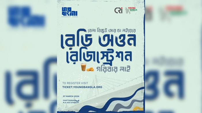 'বেলা বিস্কুট আর চা লইয়েরে, রেডি অওন রেজিস্ট্রেশন হরিবার লাই'- এভাবেই এবার চট্টগ্রামের ভাষায় 'জয় বাংলা কনসার্ট-২০২৪' এর রেজিস্ট্রেশনের আহ্বান জানিয়েছে আয়োজক ইয়াং বাংলা। বরাবরের মতো এবারও তারুণ্যের সর্ববৃহৎ এই কনসার্টের রেজিস্ট্রেশন করা যাবে একেবারেই বিনামূল্যে।