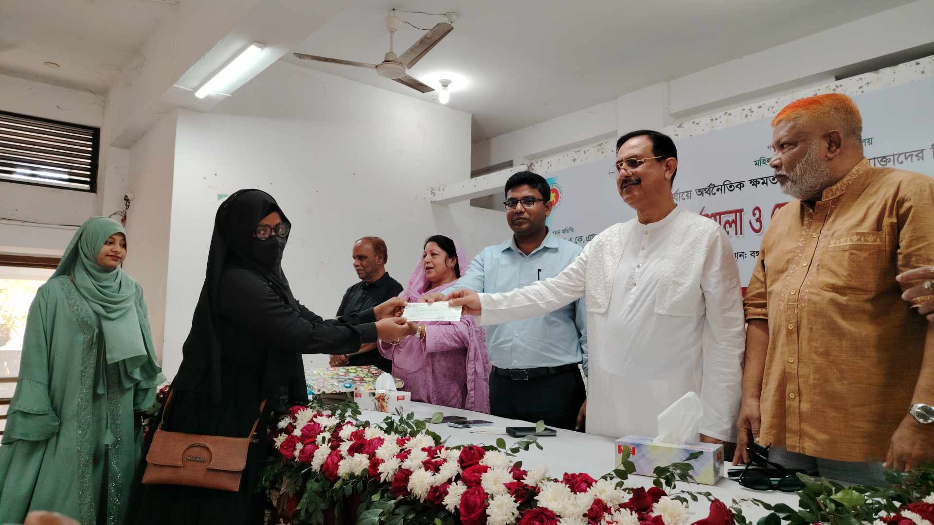 আলোচনা শেষে প্রশিক্ষণ গ্রহণ করা নারীদের মাঝে ভাতার টাকা প্রদান করেন অতিথিরা।