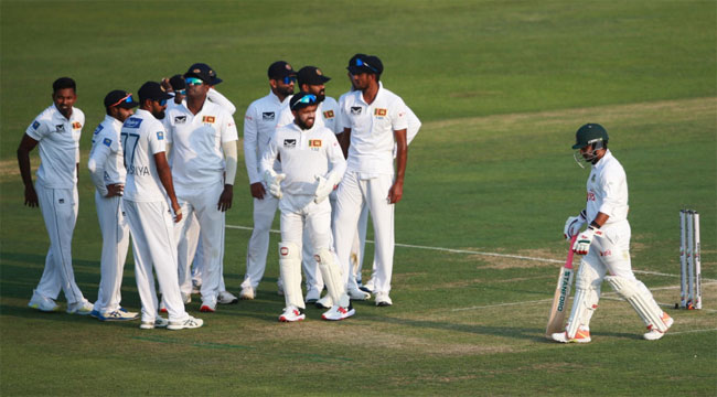 ইনিংসে প্রথমবার বোলিং করতে এসেই জয়ের উইকেট তুলে নেন কুমারা। দ্বিতীয় স্লিপে থাকা ধনাঞ্জয়া ডি সিলভাকে ক্যাচ দিয়ে সাজঘরের ফেরেন জয়। আগের দিনের ৯ রান নিয়ে এদিন ব্যাট করতে নেমে এদিন মাত্র ৩ রান যোগ করতে পেরেছেন ডানহাতি এই ব্যাটার।