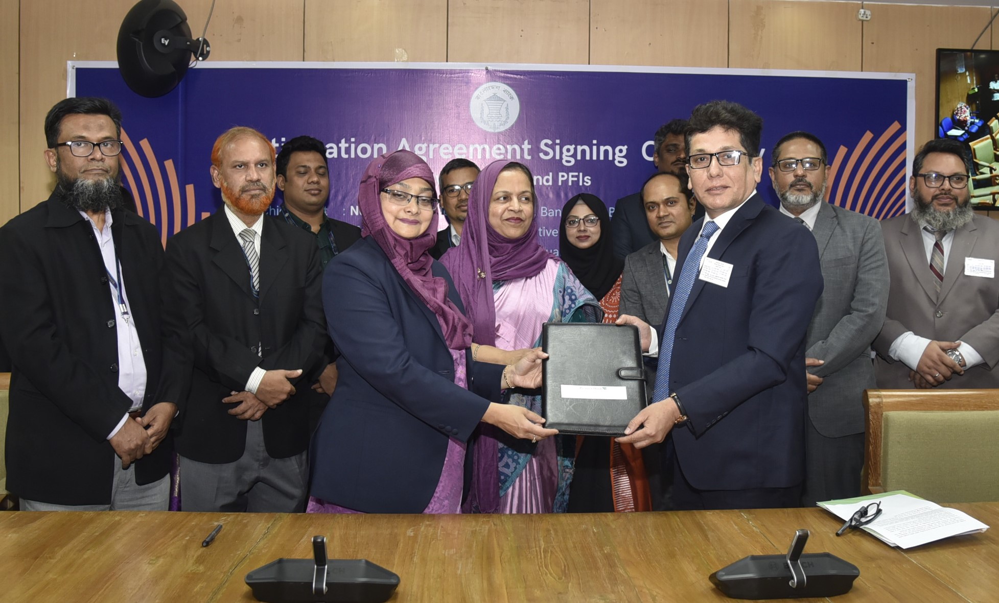 বাংলাদেশ ব্যাংকের ক্রেডিট গ্যারান্টি বিভাগের পরিচালক জনাব নাহিদ রহমান এবং প্রিমিয়ার ব্যাংক পিএলসির ডিএমডি জনাব আব্দুল কাইয়ূম চৌধুরী স্ব স্ব প্রতিষ্ঠানের পক্ষে চুক্তি বিনিময় সম্পাদন করেন।