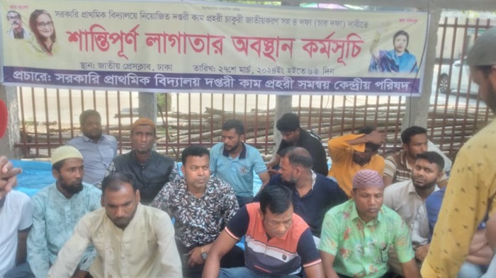 ২০১৩ সালে সরকারি প্রাথমিক বিদ্যালয় দপ্তরী কাম প্রহরী আউটসোর্সিং নীতিমালার অস্থায়ী চুক্তিভিত্তিক নিয়োগে মাননীয় প্রাধানমন্ত্রী শেখ হাসিনা সৃজিত পদে ৩৭ হাজার দপ্তরী কাম প্রহরী নিয়োজিত। সরকারের ওপর আস্থা রেখে দীর্ঘ ১১ বছর আউটসোর্সিং নীতিমালায় জীবনের ঝুকি নিয়ে দিবা রাত্রি সার্বক্ষনিক ২৪ ঘন্টা অমানবিক দায়িত্ব, সর্বসাকুল্যে বেতন নিয়ে মানবেতর দায়িত্ব পালন করে আসিতেছে। আউটসোর্সিং পরিবর্তে দপ্তরী কাম প্রহরী পদটি রাজস্বখাতে পদ সৃজনের জন্য প্রাথমিক ও গণশিক্ষা মন্ত্রণালয়, জনপ্রশাসন মন্ত্রণালয়কে রাজস্বখাতে নেওয়ার জন্য অনুরোধ করা হয়।
