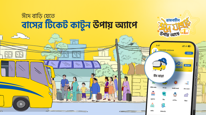 ঈদের সময় মানুষ নিজ শহর বা গ্রামে ছুটে যায়। এই মৌসুমে দীর্ঘ লাইনে দাঁড়িয়ে টিকিট কেনার সময় বিভিন্ন রকম হেনস্তার শিকার হয় সাধারণ মানুষ। মানুষের এই ভোগান্তির সমাধান এবং ঈদ যাত্রাকে আরও আনন্দময় করে তুলতে উপায় নিয়ে এসেছে অ্যাপের মাধ্যমে ঝামেলাহীনভাবে বাসের টিকিট কেনার সুযোগ। সাথে থাকছে বিশেষ ছাড়।
