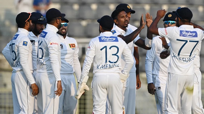 ফলে ২৮ বলে ১৪ রান করে ফিরে যেতে হয় তাইজুলকে। তার বিদায়ে ভাঙে ৩৮ রানের অষ্টম উইকেট জুটি। তারপর হাসান মাহমুদকে সঙ্গে নিয়ে দলীয় ৩০০ পার করে বাংলাদেশ। দুজনের জুটিতে আসে ৩১ রান। এই জুটি ভাঙেন লাহিরু কুমারা। তার বাউন্সার সামলাতে না পেরে সিলি মিড অনে ক্যাচ তোলেন হাসান মাহমুদ। এই ক্যাচটি নেন নিশান মাদুশকা। হাসান ফিরেন ২৫ বলে ৬ রান করে। তারপর কুমারার বলে খালেদ বোল্ড হলে বাংলাদেশের ইনিংস শেষ হয় ৩১৮ রানে।