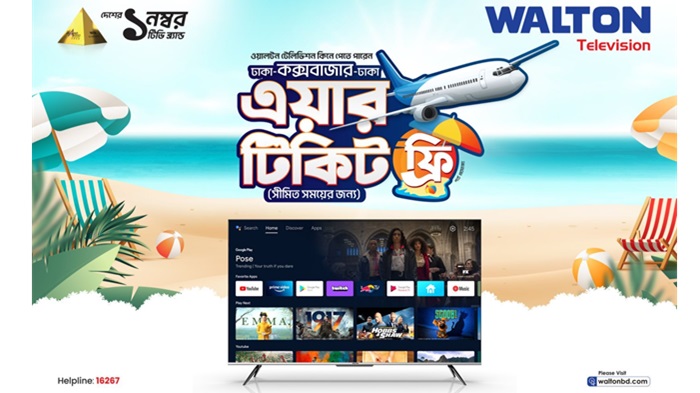ঈদকে সামনে রেখে ওয়ালটন টিভি কিনে ঢাকা-কক্সবাজার-ঢাকা’র এয়ার টিকিট ফ্রি পাওয়ার সুযোগসহ দেশব্যাপী চলমান ‘ডিজিটাল ক্যাম্পেইন সিজন-২০’ এর আওতায় ক্রেতাদের জন্য রয়েছে ‘ননস্টপ মিলিয়নিয়ার’ হওয়ার সুযোগ। অর্থাৎ ওয়ালটন টিভি কিনে ক্রেতারা পেতে পারেন নগদ ১০ লাখ টাকা।